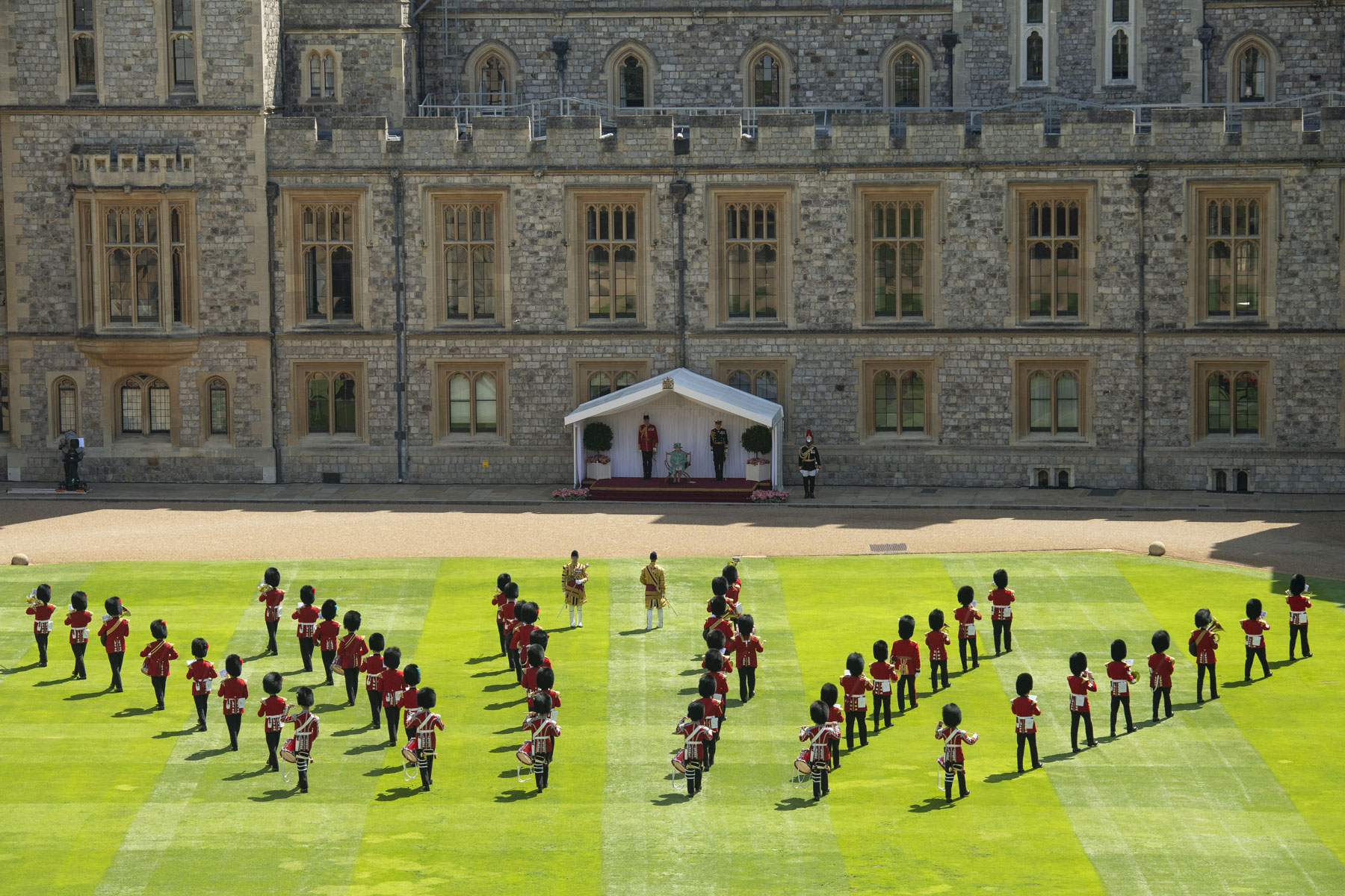 The queen's official birthday has been marked with a unique ceremony performed by the welsh guard at windsor castle.